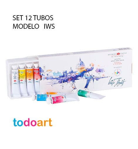 Selection of colors by the International Association of Watercolorists (IWS) of 10 ml tubes. of the white night brand.