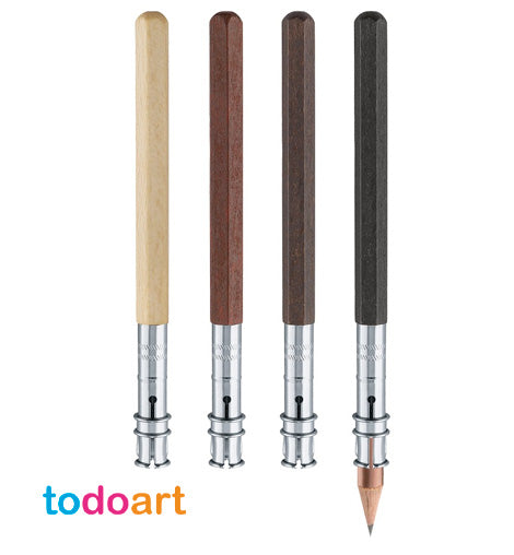 apuralapices Nickel-plated metal pencil holder in a retro design with a natural zebrawood lid. Measures 55 x 8mm