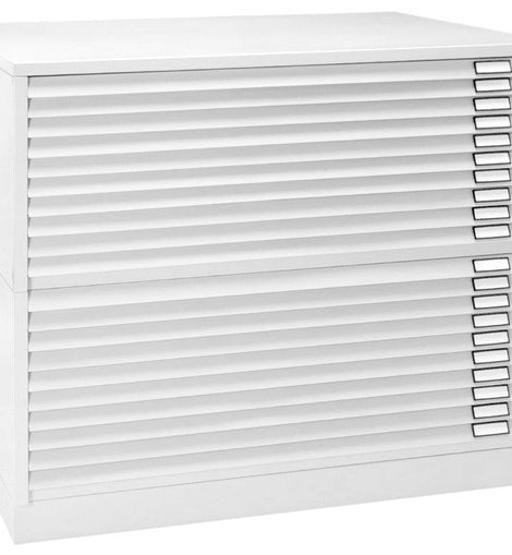 Plans filing cabinet Todoart horizontal file 7 drawers. Horizontal metal drawer designed to store papers and documents. The file is made up of a section with a lid. Each section has 7 drawers and includes a lock with keys. The front has a chrome metal handle and poster holder. Our production of files for many years is the favorite of many artists and institutions due to the quality of the materials, all the files are painted in an oven cabin with epoxy paint. The robustness of the st...
