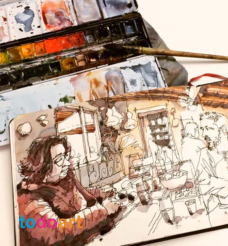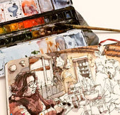 This watercolor notebook is the ideal companion for artists who like to capture their vacation memories without delay. The 200 gsm natural white paper has a fine-grained surface structure on both sides. Which makes it ideal for creating full-width panoramic paintings.