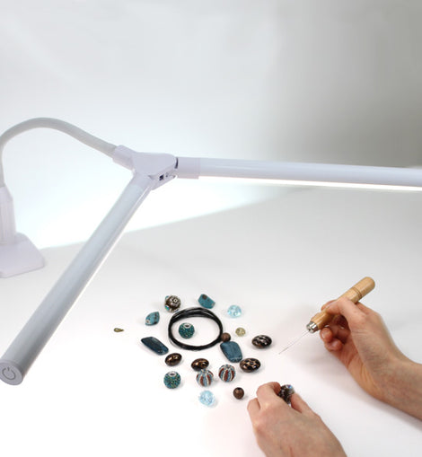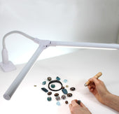 Double head that increases the illuminated work surface, its flexible arm directs the light to the exact point where your 56 need it