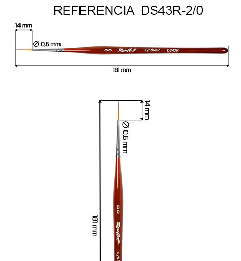 DS13R roubloff brush Professional synthetic hair brush for strokes and very fine lines. Imitation of Kolinsky. short handle Available in size: No. 10/0, 00,0,1,2