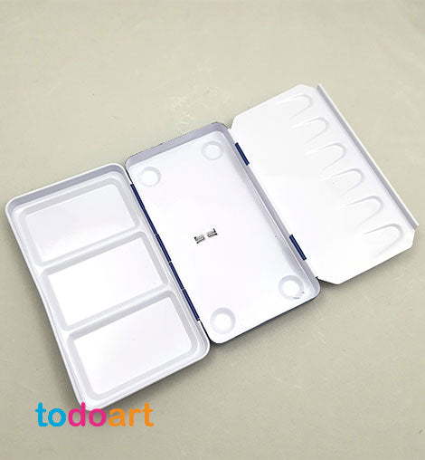 Full or half godets can be placed inside the box does NOT have rails inside to accommodate the watercolor tablets