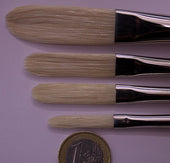 Natural bristle brushes in the shape of a cat's tongue with a longer length than usual. This combination gives it a flexibility that, added to the bristle's ability to carry high densities, allows it to generate a set of resources that are difficult to match. transitions between colors and densities occur with great economy of gestures and the rheological characteristics of the painting are enhanced. It is a good choice if you are looking for typical resources of painters such as Rembrandt, Velazquez, Hals or Sargent