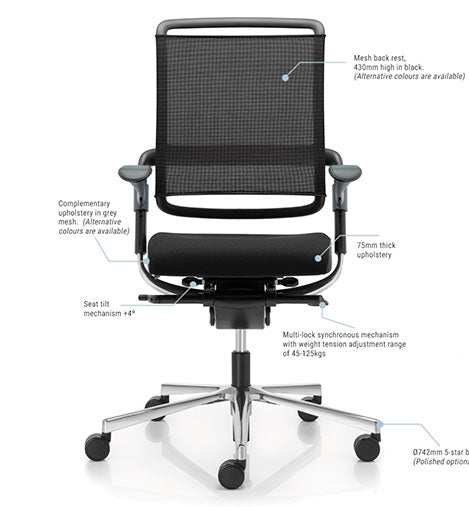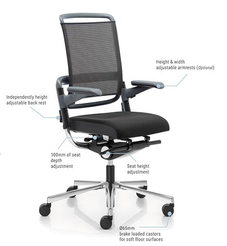 Designed to be comfortable and fully adjust the distances and mechanisms of the chair to your size and body weight.
