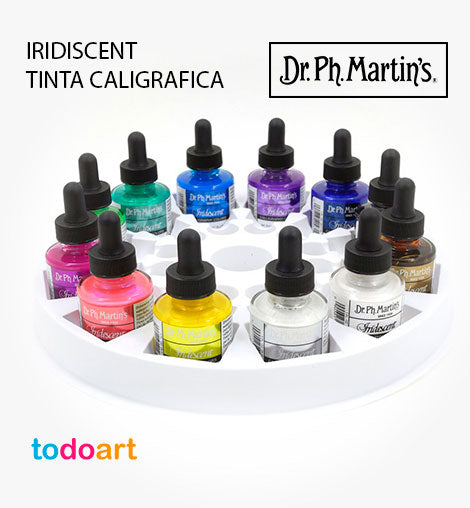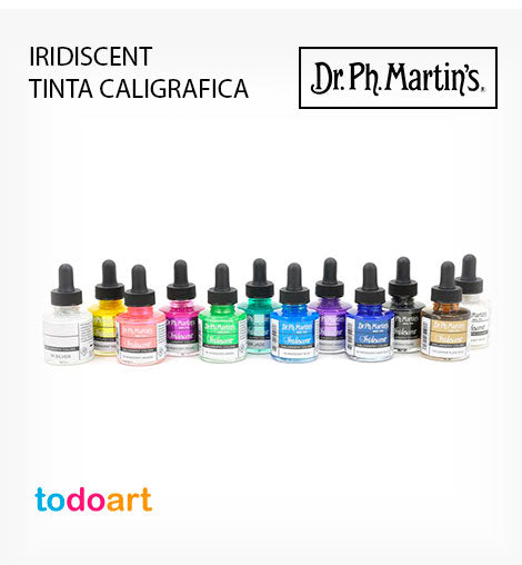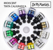 Set of 12 iridescent calligraphic inks, the colors when dry are permanent and are very metallic.