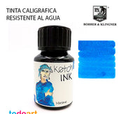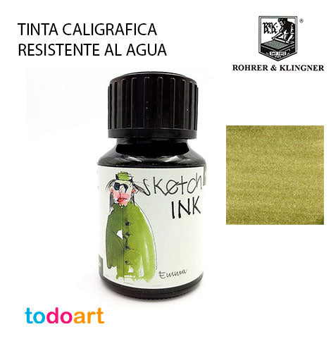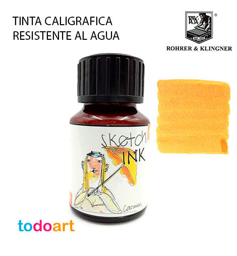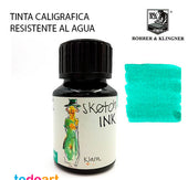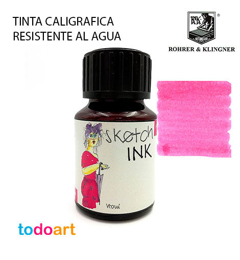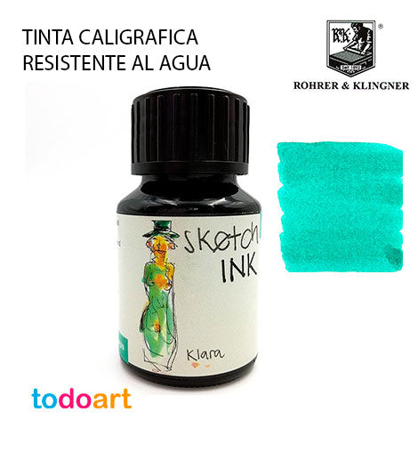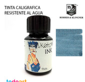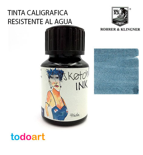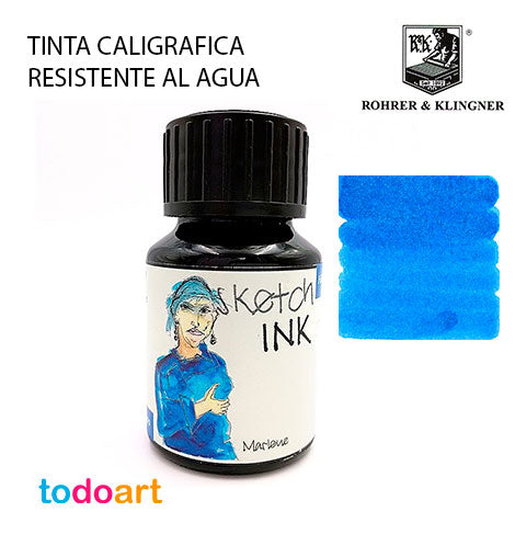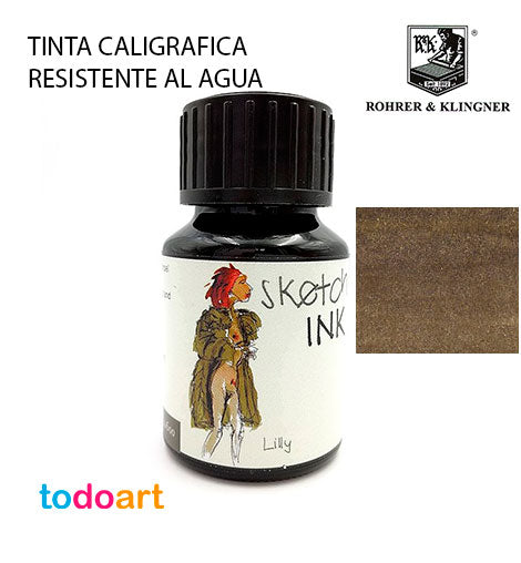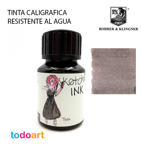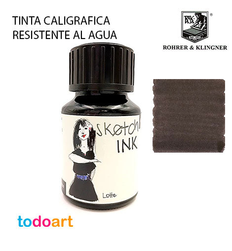 This India ink is very black and opaque, resistant to light, manufactured by Rohrer & Klingner.