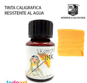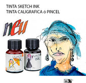 Unlike calligraphic ink, this ink has pigments bound with gum arabic.