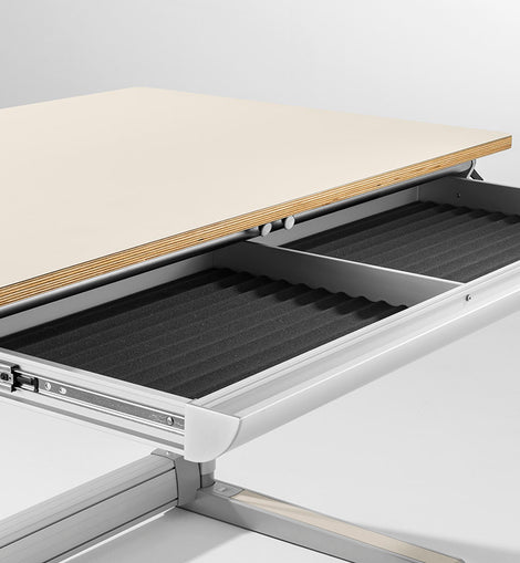 La mesa viene equipada con cajón extra grande y plano debajo del tablero.