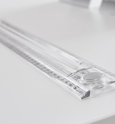 El tablero es magnético en la parte de abajo lo cual permite que la regla que trae incorporada de quede adherida al tablero y esto nos permite pisar los papeles sin que se nos caigan al suelo.