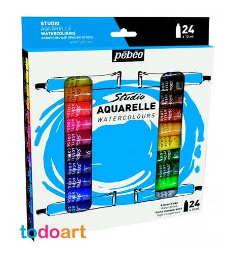 Set of 24 watercolor colors from Pebeo in 12 ml format.