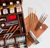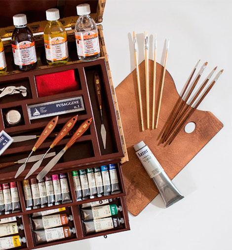Maimeri has created this beautiful box of high-quality oil paintings, a vintage-style box in the shape of a chest with a lot of design and glamour.