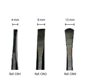 Chisel for stone sculpture made of tempered steel with a straight or curved tip, a fundamental tool for stone sculpture.