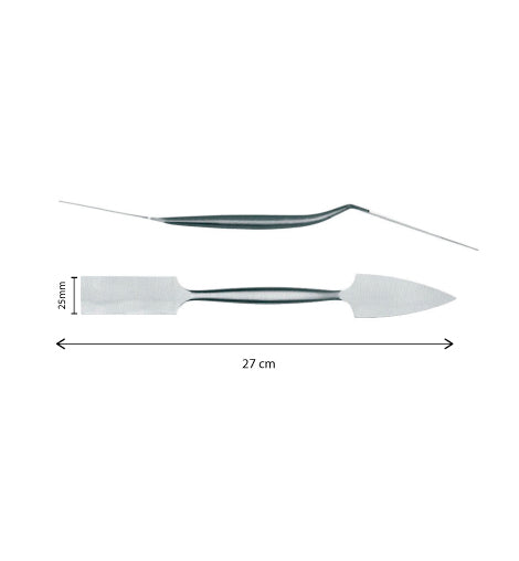 Stainless steel spatula ideal for modeling or as a tool in restoration or archeology work.