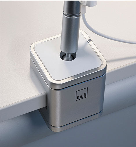 A resistant base that can be attached to boards with a thickness from 13mm to 23mm.