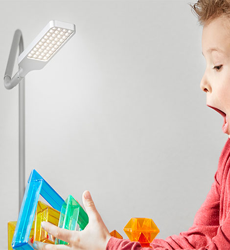 Flexilight a lamp designed for moll tables and others, this model is ideal for many children. Low power consumption and smart design. Protection in the eyes of the child who will be able to draw, paint, study safely.
