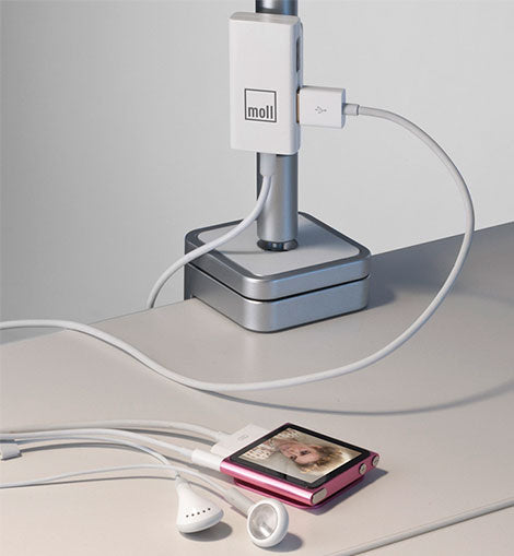 The base is equipped with a dual-port USB charger with which we can charge our phones or put our players without the need for an extension cord.