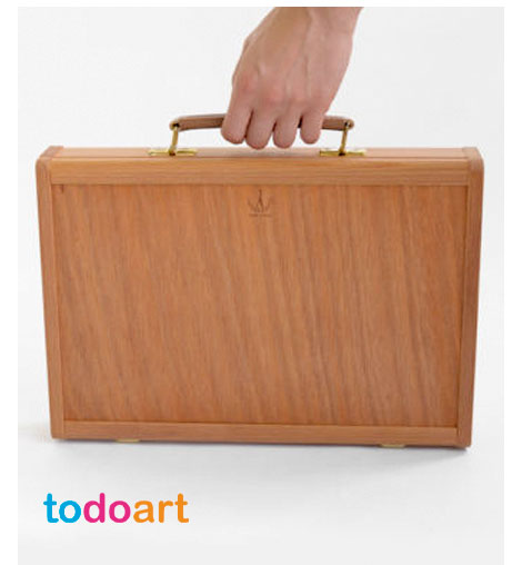 Elegant box for storing paints made of noble wood.