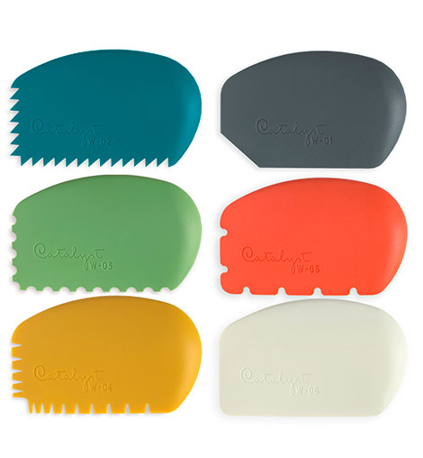 A tool for use with paints and with modeling and ceramic pastes. Each crescent blade has a shape on the edge that allows us to create different textures.