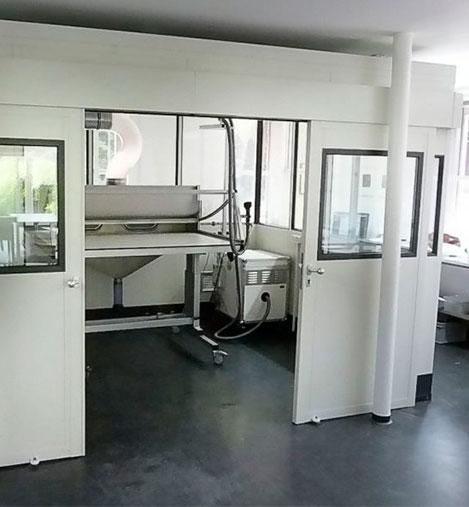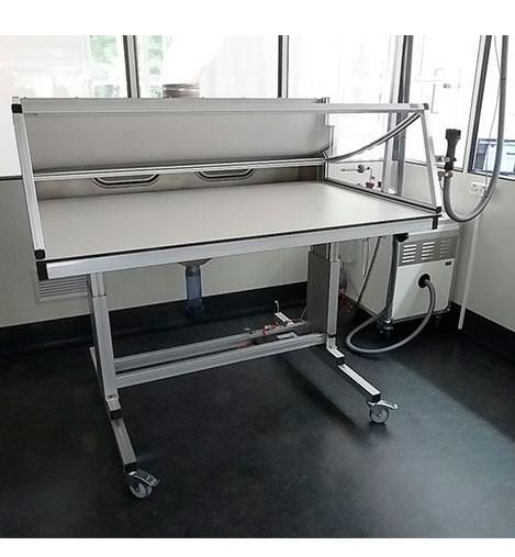 Table specially designed to vacuum dust through the bottom of it, it also incorporates a manual support for vacuuming and cleaning. The table is adjustable in height electrically. It has special filters.