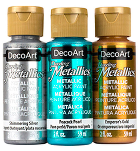 Decoart's Metallic acrylic paint is a very creamy paint that leaves a metallic shine when it dries.