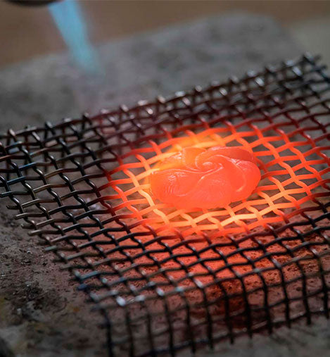Creating designs in 999 fine silver is easy with this product, we can burn the product with a torch to avoid the use of the oven, when we apply it, when heating the piece a soft flame will appear around the piece that will disappear, we must heat the piece up to that we see an orange color we must then continue giving heat for 3 minutes.