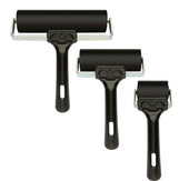 With black handle and black rubber, made of black rubber and shore 60 hardness suitable for applying inks.