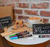The finest marker on the market to write on blackboards, extra-fine tip to make small posters, once the ink is dry we can remove it from the blackboard with a damp cloth