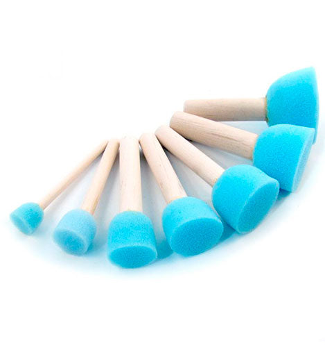 Set of 7 sponge brushes, with wooden handles, in different diameters